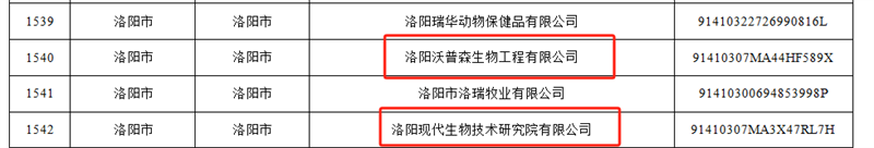 现代生物集团旗下公司,洛阳现代生物技术研究院有限公司成功通过国家高新技术企业复审,洛阳沃普森生物工程有限公司通过国家高新技术企业认定。至此,集团旗下已有三家国家高新技术企业,一家国家专精特新 “小巨人” 企业、一家国家知识产权优势企业。