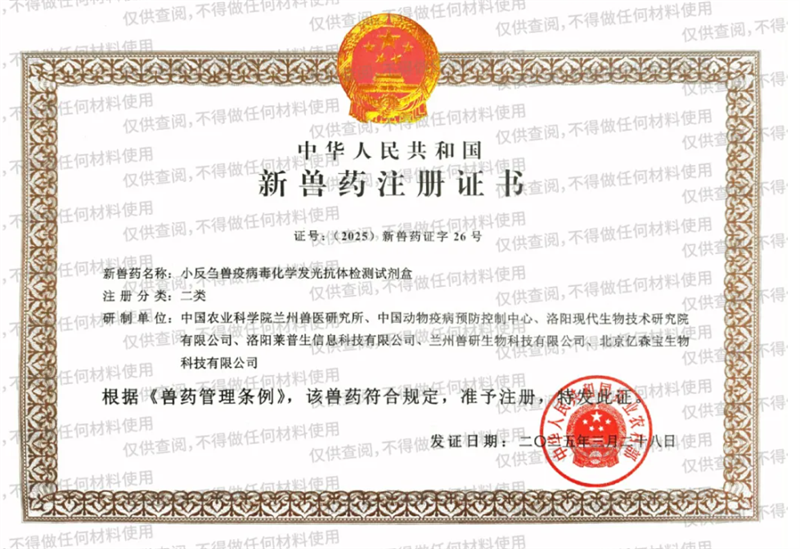 近日,农业农村部批准由洛阳现代生物技术研究院等开发的小反刍兽疫病毒化学发光抗体检测试剂盒(注册证号:二类(2025)新兽药证字26号)获得批准文号。该产品恰逢国家强制免疫深化之年,为全国羊群免疫效果精准评估提供关键技术保障!标志着我国动物疫病诊断技术再添国产化利器!